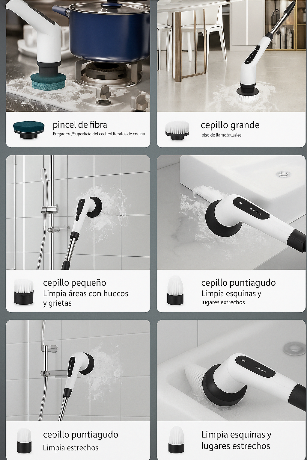Con la ayuda de este cepillo eléctrico ganarás horas valiosas cada semana ⏱️ porque mientras antes pasabas toda una tarde limpiando, ahora en pocos minutos podrás dejar cualquier superficie como nueva ✨. Dedica ese tiempo a lo que realmente importa: tu familia, tu descanso o tus hobbies 💖.