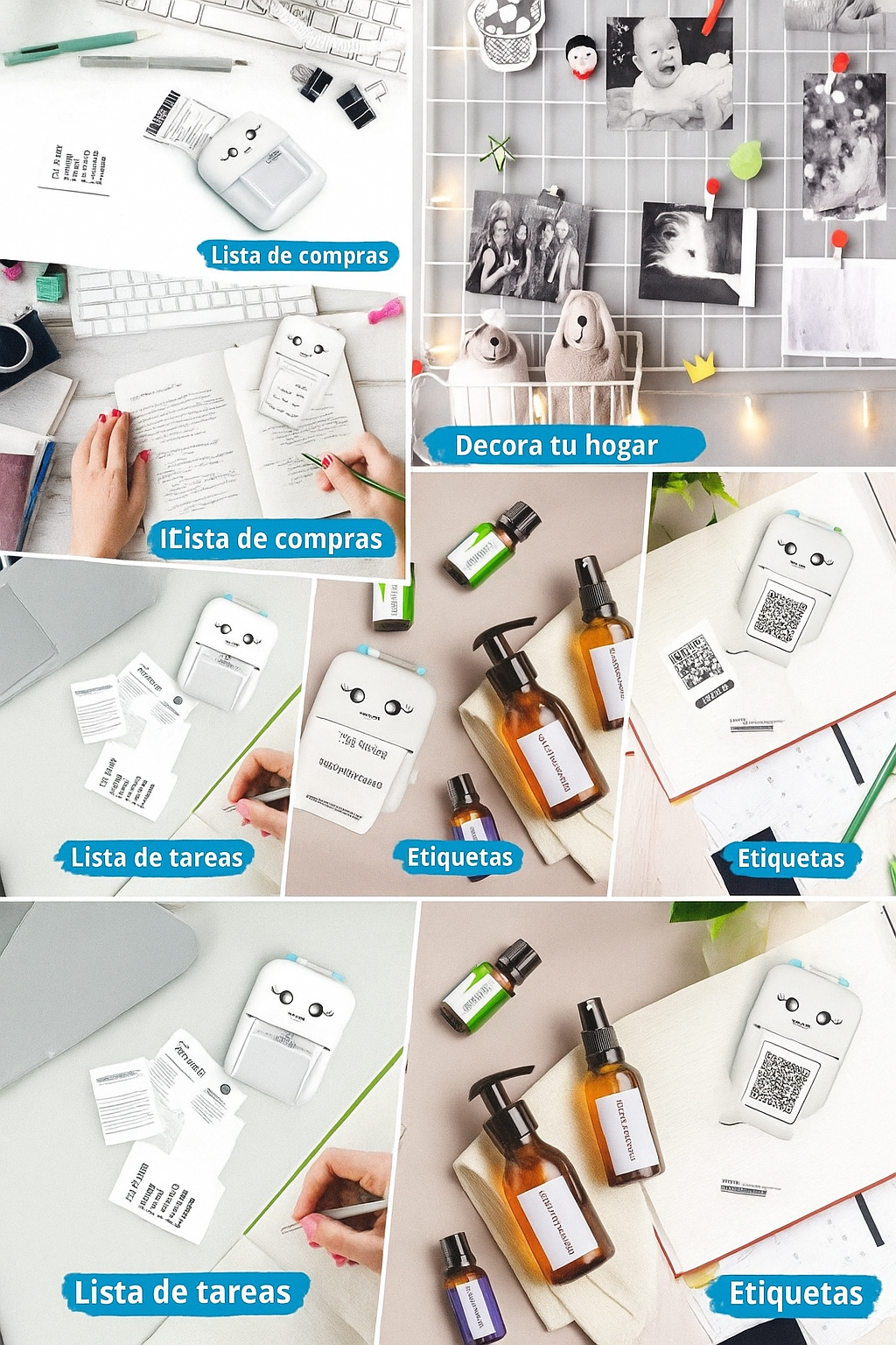 ¿Te imaginas poder imprimir fotos, notas y etiquetas donde quieras y cuando quieras? Con la Mini Impresora de Bolsillo podrás hacerlo en segundos, sin necesidad de tinta y con la máxima comodidad. Compacta, ligera y fácil de llevar, se convertirá en tu mejor aliada en el hogar, la oficina o de viaje.