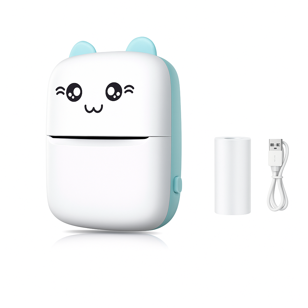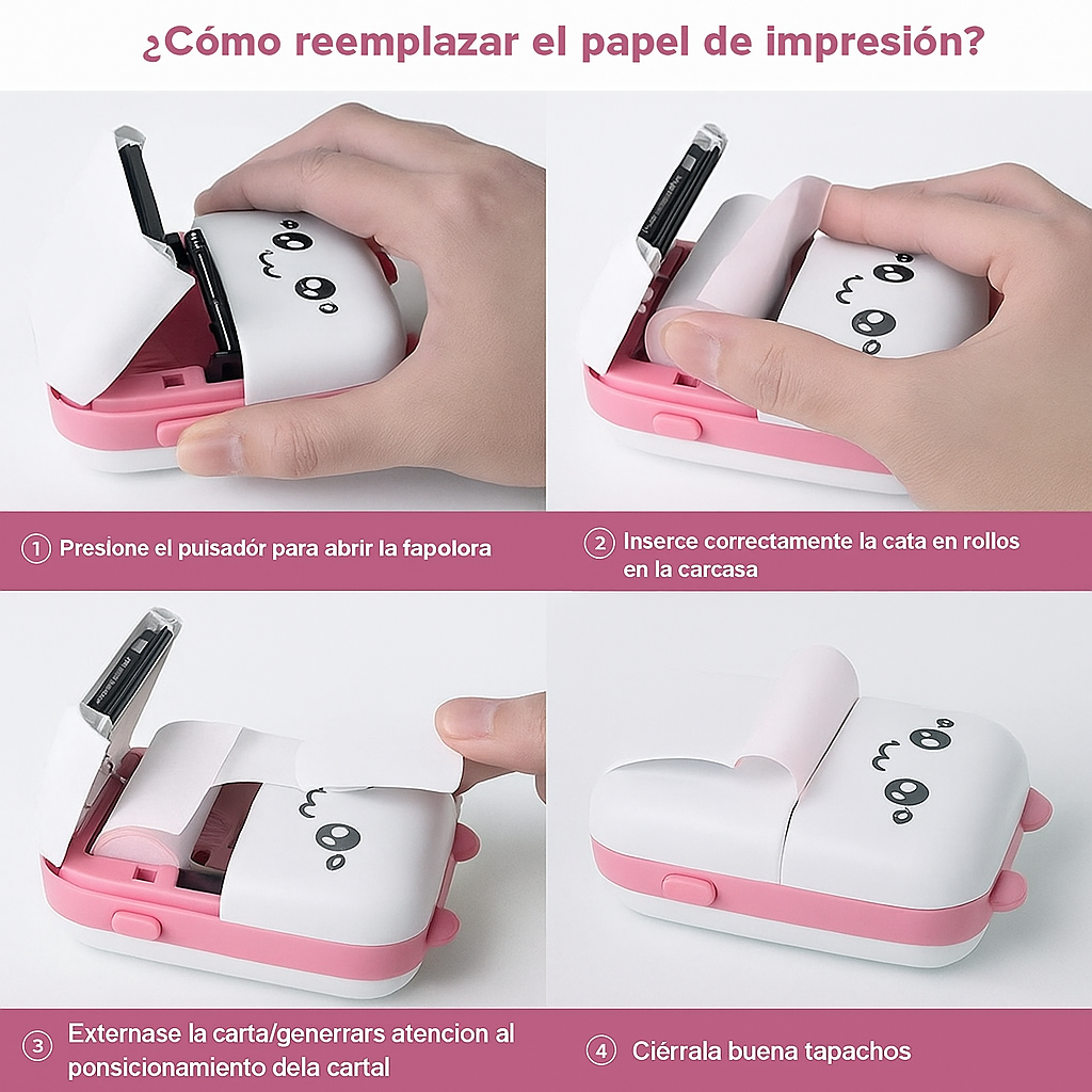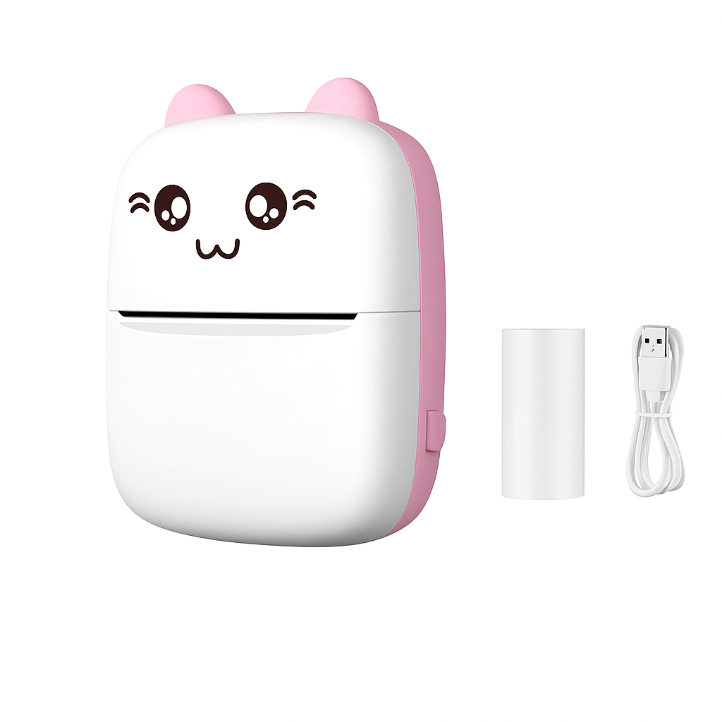 Cada mini impresora incluye dos rollos de papel para que empieces a usarla de inmediato. Disponible en colores azul y rosa, con un diseño moderno y ligero que cabe en tu bolsillo.