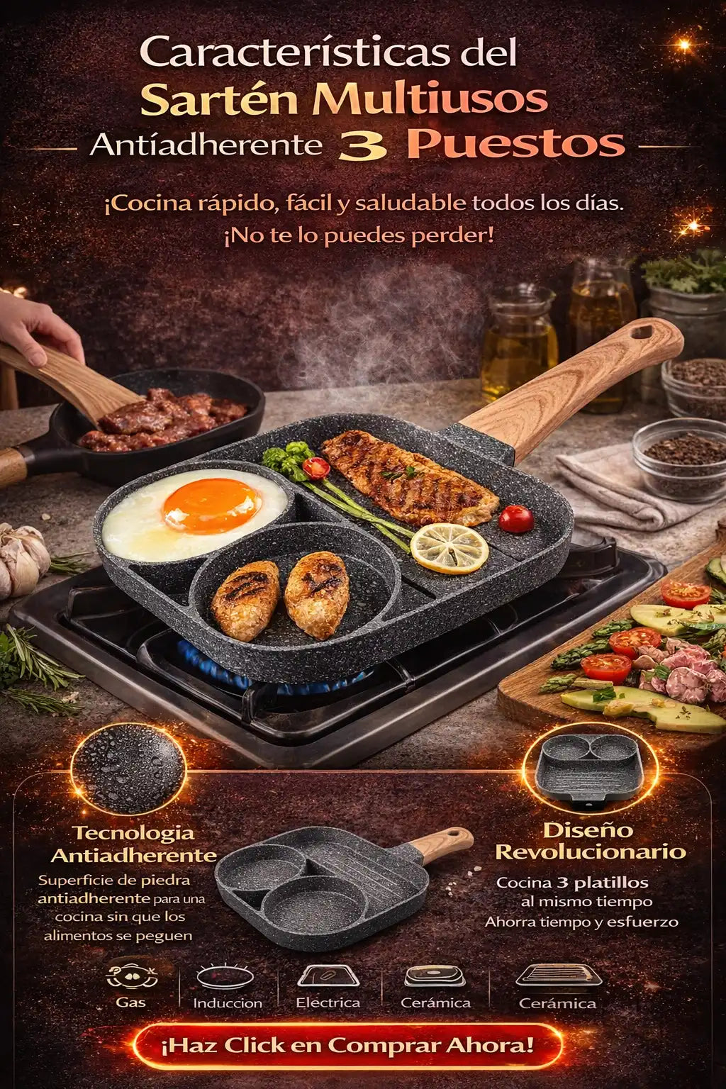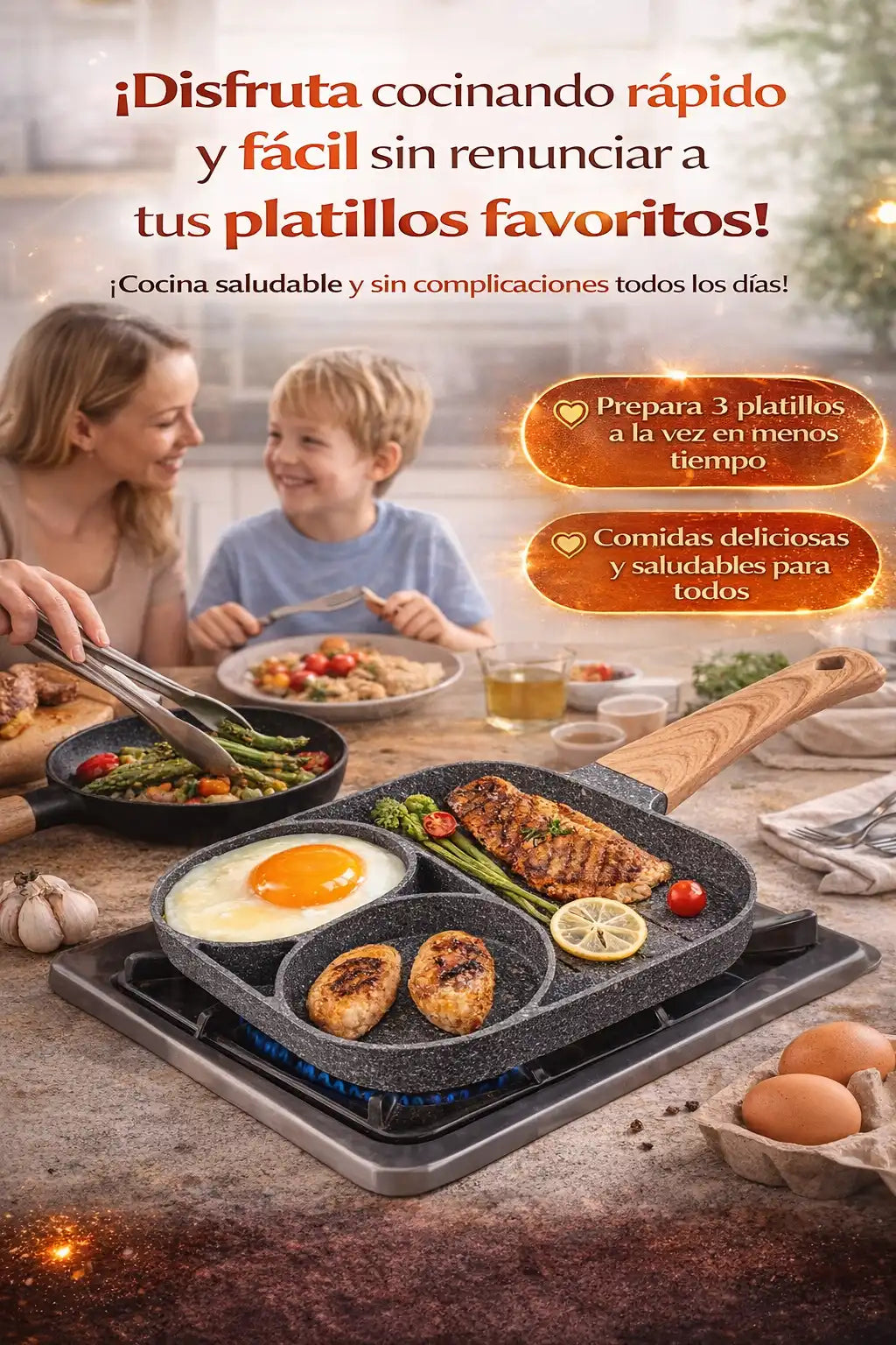 🍳 Les gusta la practicidad de tener 3 espacios diferentes para cocinar