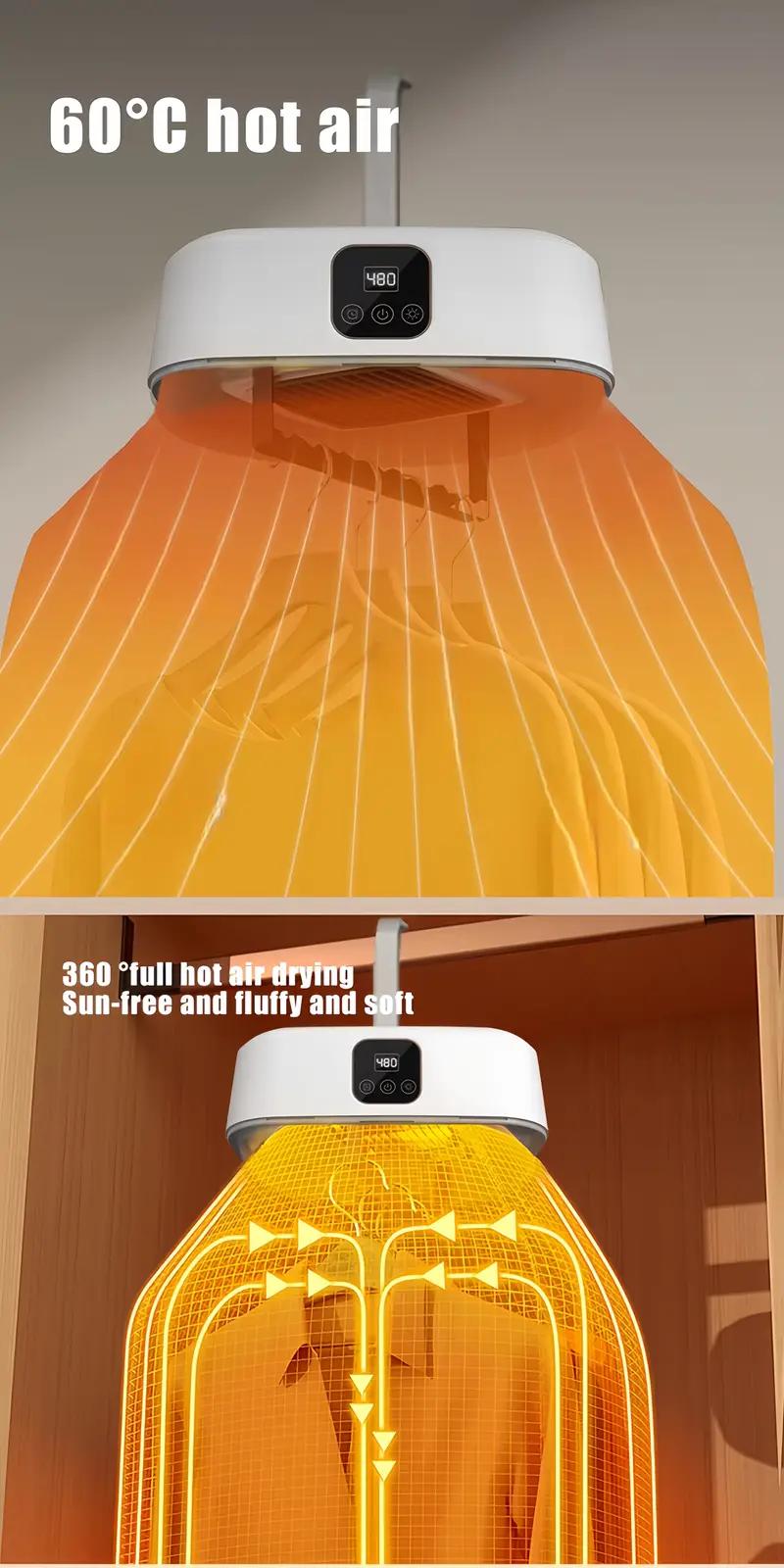 La Secadora de Ropa Portátil Plegable cuenta con un potente flujo de aire y calor que garantiza un secado rápido y eficiente 💨🔥.