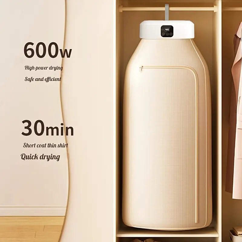 La Secadora de Ropa Portátil Eléctrica es ideal para quienes viven en espacios reducidos o llevan un estilo de vida dinámico. Con 600 W de potencia, dos modos de secado y un temporizador ajustable, se adapta a distintos tipos de telas protegiendo siempre tus prendas.