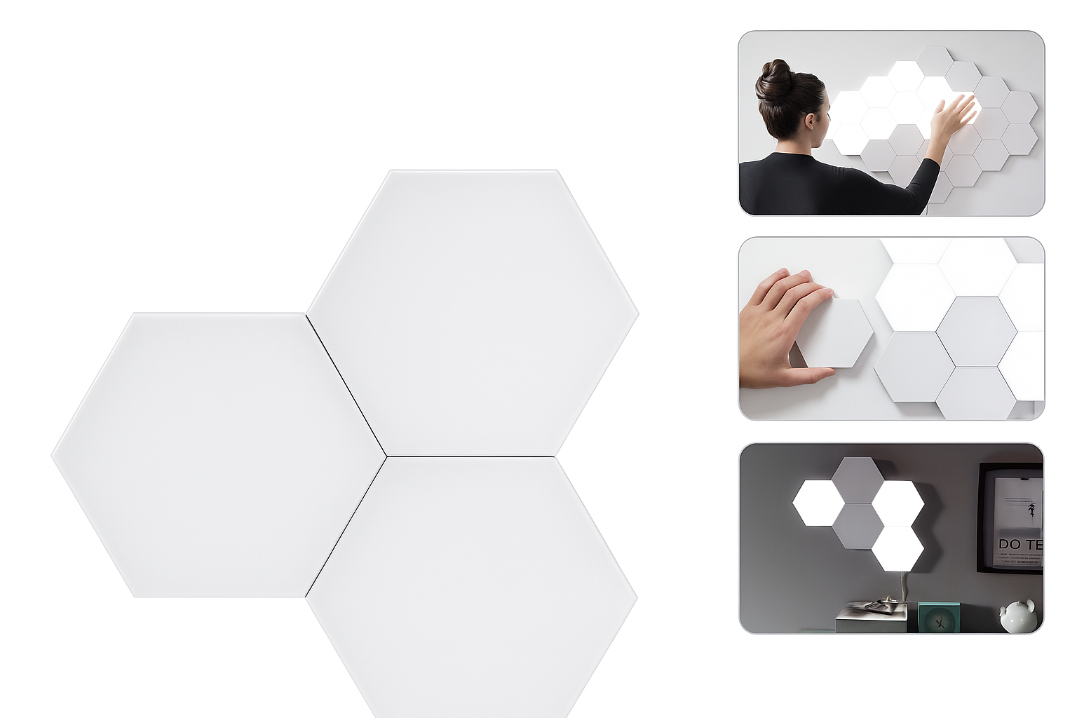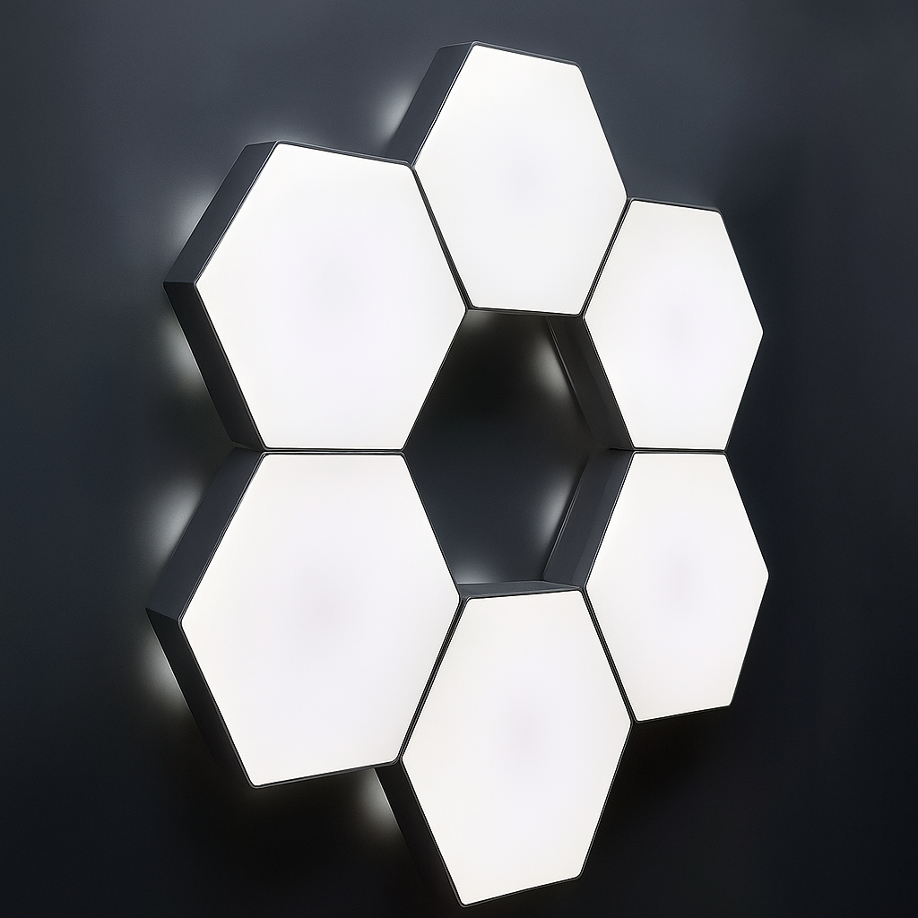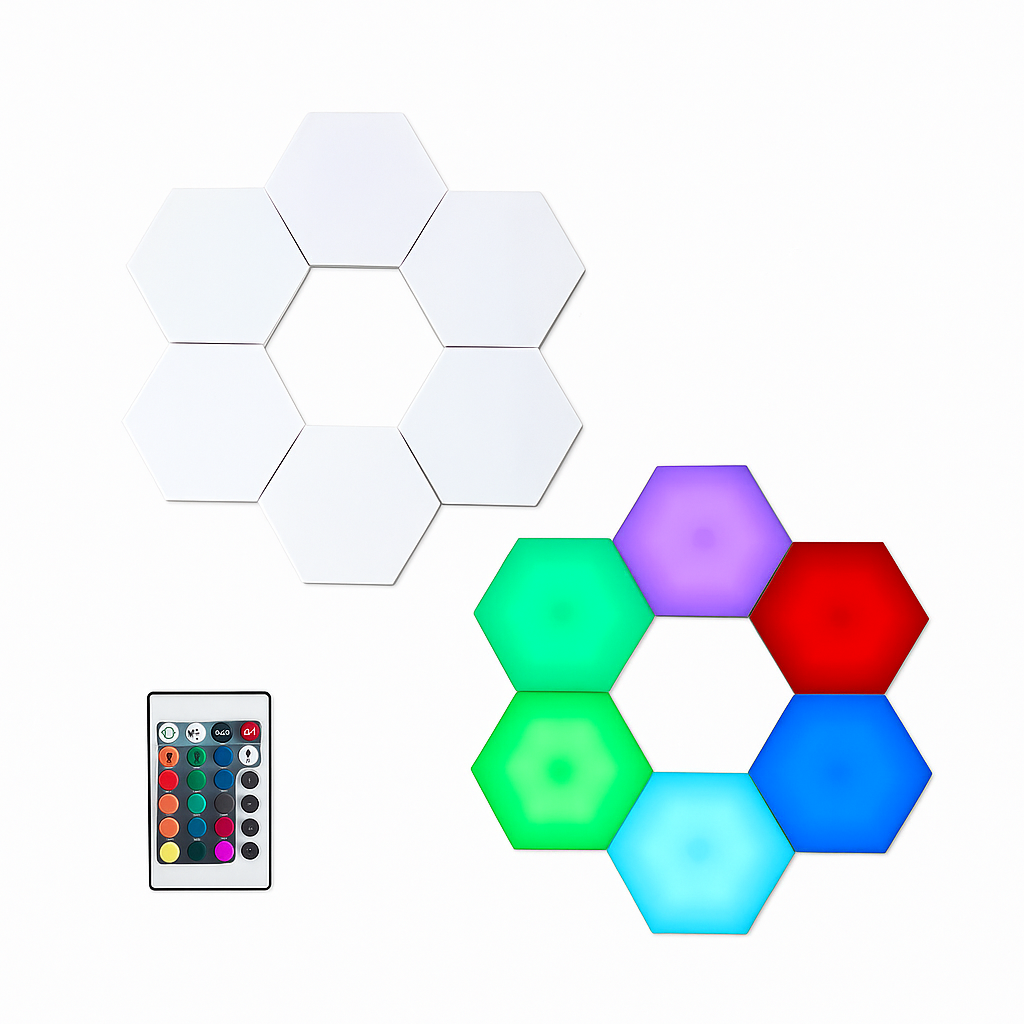 Las luces LED hexagonales cuentan con un diseño innovador y minimalista que te permite conectarlas y formar tu propio estilo. ¡Crea figuras únicas en tus paredes y convierte tu sala, dormitorio o sala de juegos en un espacio moderno y sorprendente!